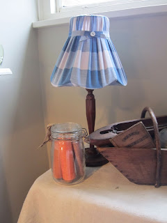 Another favourite is this soft beige and red linen ticking which gives such a warm glow when lit.